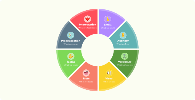 An interactive 8-sense wheel that helps kids understand how their senses work and connect to their brain and body.